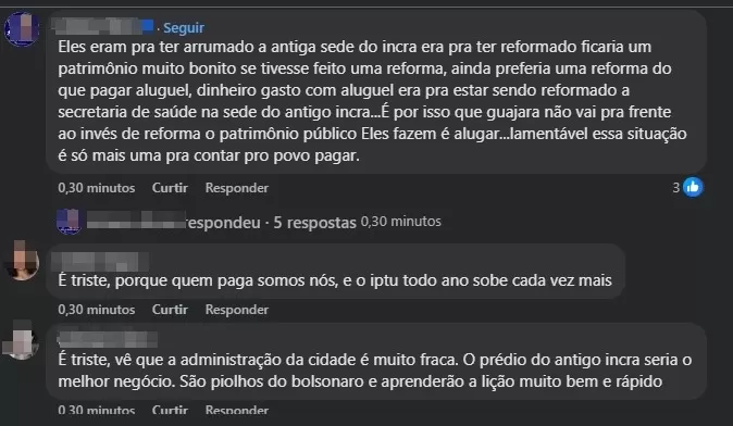 A mudança de endereço também gerou críticas nas redes sociais. Internautas questionaram a decisão do prefeito Netinho de transferir a Semsau do antigo prédio do Incra, que não gerava custos de aluguel para o município. Já outros alegaram que a estrutura do antigo prédio estava em péssimas condições. Veja abaixo: