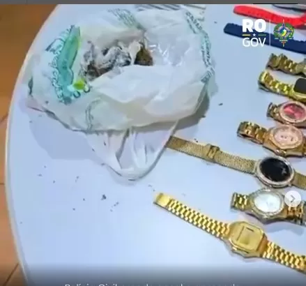 Ainda na residência, foram localizados uma porção de maconha, diversos cigarros artesanais da mesma substância, um recipiente contendo relógios de procedência a esclarecer e aparatos comumente utilizados para o preparo e a comercialização de entorpecentes, como sacos plásticos tipo picolé, papel filme, bórico e outros materiais. A equipe também encontrou uma máquina leitora de cartões com a marca Mercado Pago, além de vários cartões bancários em nome dos investigados e de terceiros.