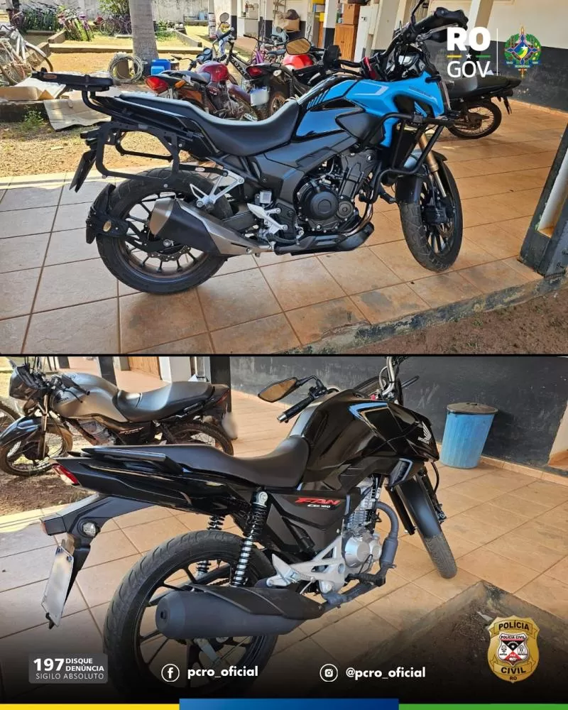 Foram igualmente apreendidas duas motocicletas – uma Honda Titan 160cc e uma Honda 500cc. Para reforço da ação, foi acionado o apoio especializado do DENARC/CINOTÉCNICA, que realizou buscas adicionais no quintal da residência, não sendo encontrados novos objetos ilícitos.