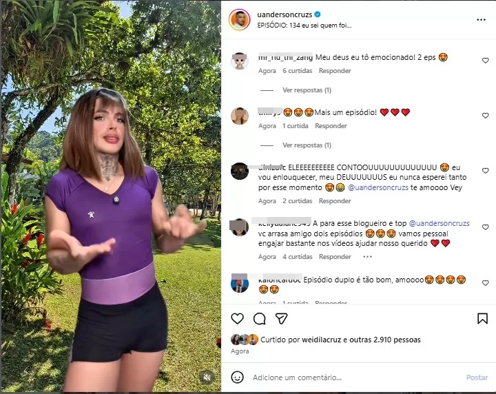 Apesar da rotina intensa, Uanderson mantém seu emprego durante o dia. Nas horas vagas, continua presente nos stories, compartilhando momentos do cotidiano e fortalecendo a conexão com os seguidores, algo que contribui diretamente para o engajamento crescente da mini novela “O Jogo das Aparências”.
