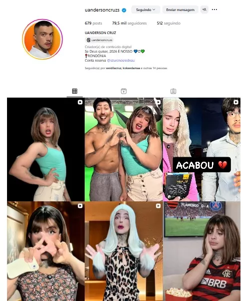 O influencer Uanderson Cruz, de Porto Velho (RO), vem chamando atenção nas redes sociais com um projeto criativo que mistura humor, drama leve e personagens marcantes. Com quase 90 mil seguidores no Instagram e mais de 163 mil no Tiktok, o rondoniense tem conquistado público não apenas do estado, mas também de diversas regiões do país.