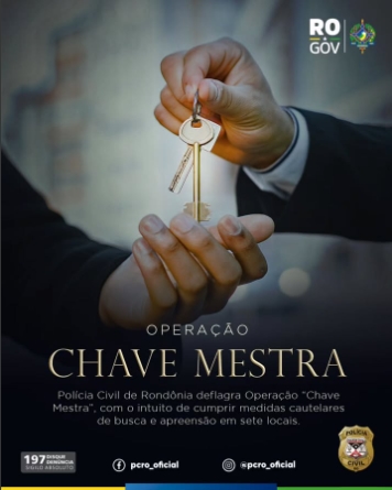 A Polícia Civil do Estado de Rondônia, por meio da Delegacia de Combate à Corrupção (DECOR), com o apoio operacional do Departamento de Combate à Corrupção e ao Crime Organizado (DECCO), deflagrou na manhã de hoje (21), a Operação “Chave Mestra”, com o intuito de cumprir medidas cautelares de busca e apreensão em sete locais.