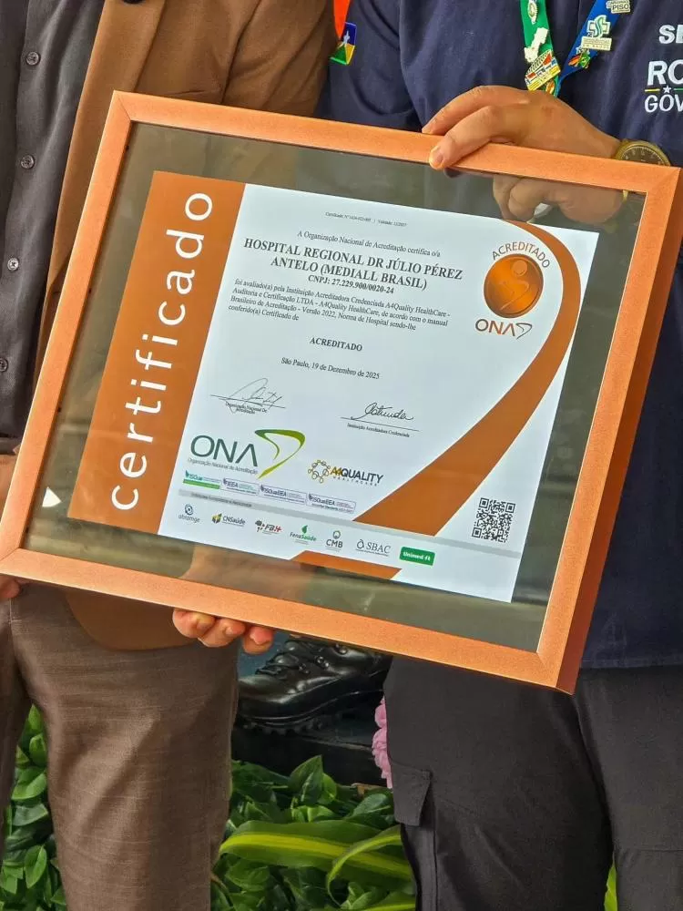 O Hospital Regional de Guajará-Mirim Dr. Julio Perez Antelo recebeu, no sábado (24), o selo da Organização Nacional de Acreditação (ONA), certificação voluntária e rigorosa que avalia a qualidade e a segurança dos serviços de saúde no Brasil. O reconhecimento é focado na segurança do paciente e classifica hospitais, clínicas e laboratórios em três níveis: Acreditado, Acreditado Pleno e Acreditado com Excelência, sendo também reconhecido internacionalmente pela International Society for Quality in Health Care (IsQUA).