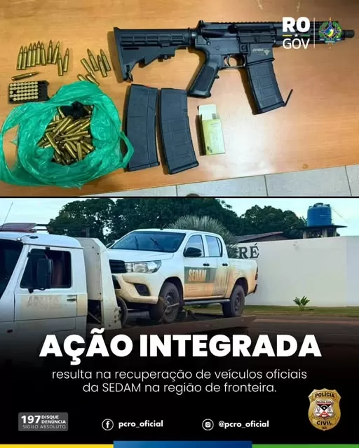 A Polícia Civil do Estado de Rondônia, por meio da Delegacia de Repressão ao Crime Organizado (DRACO 2), em atuação integrada com a Polícia Militar, recuperou, neste domingo (1º de fevereiro), duas caminhonetes oficiais pertencentes à Secretaria de Estado do Desenvolvimento Ambiental (SEDAM). Os veículos haviam sido furtados recentemente no município de Cacoal.