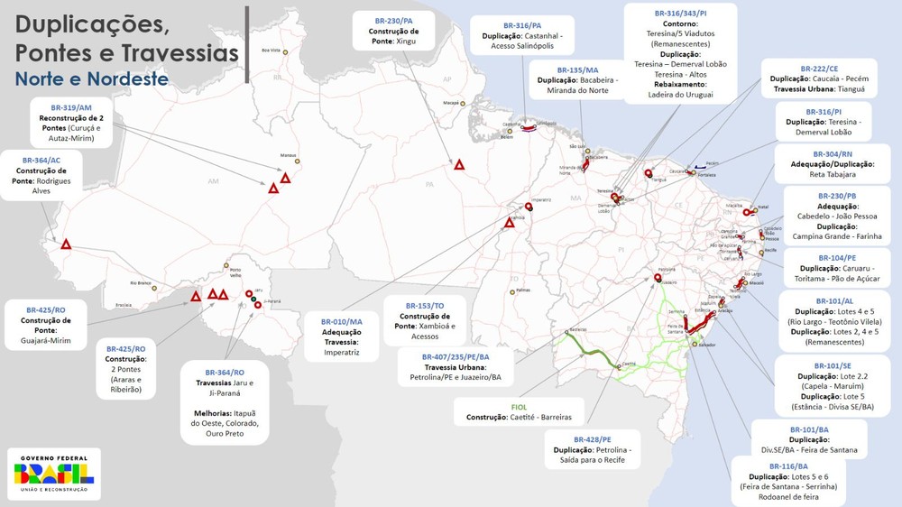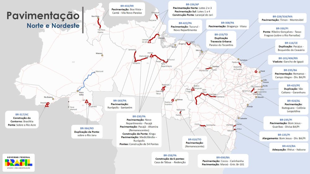 A Região Norte terá mais de R$ 4 bilhões em investimentos nas rodovias em 2023, divididos entre manutenção, construção e adequação. O Amazonas receberá pouco mais de R$ 642 milhões de reais, a maior fatia do orçamento, deste total R$ 427, 5 milhões serão para manutenção e pouco mais de R$ 215 milhões para construção e adequação.