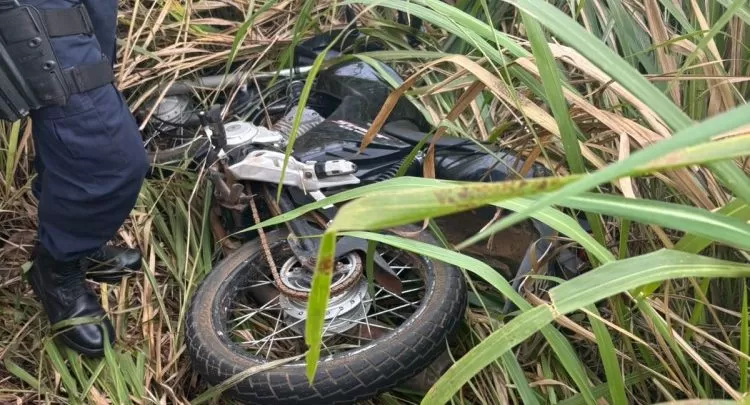 Motocicleta furtada é encontrada abandonada em matagal na zona rural